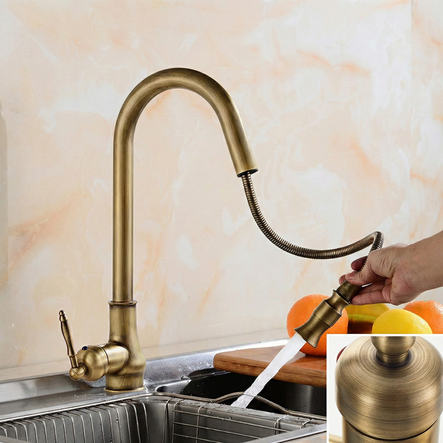 Sa finition doré antique brossé ou noir apporte un style intemporel, capable de s’intégrer aussi bien dans une cuisine moderne que plus classique.